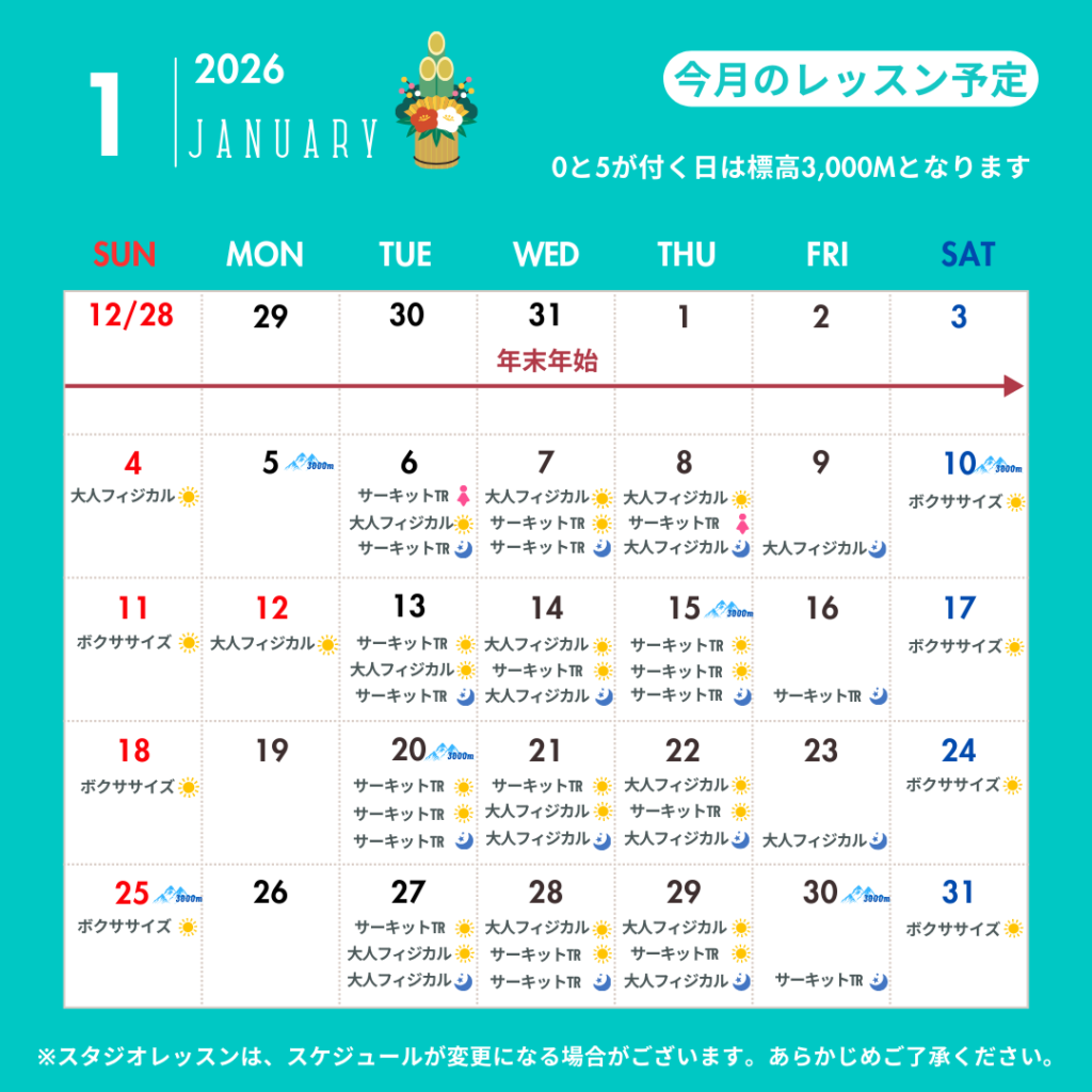 2026年1月スタジオカレンダー
