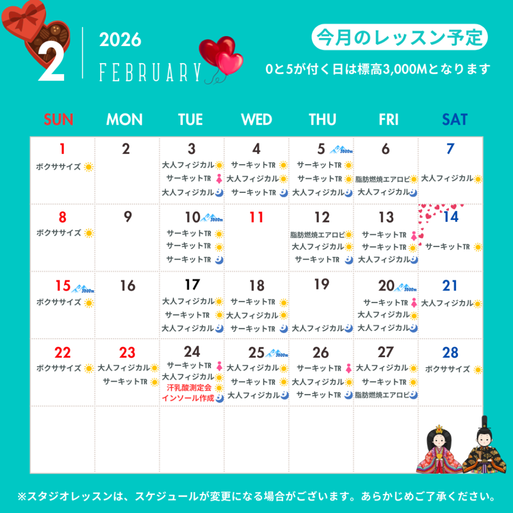 2026年1月スタジオカレンダー